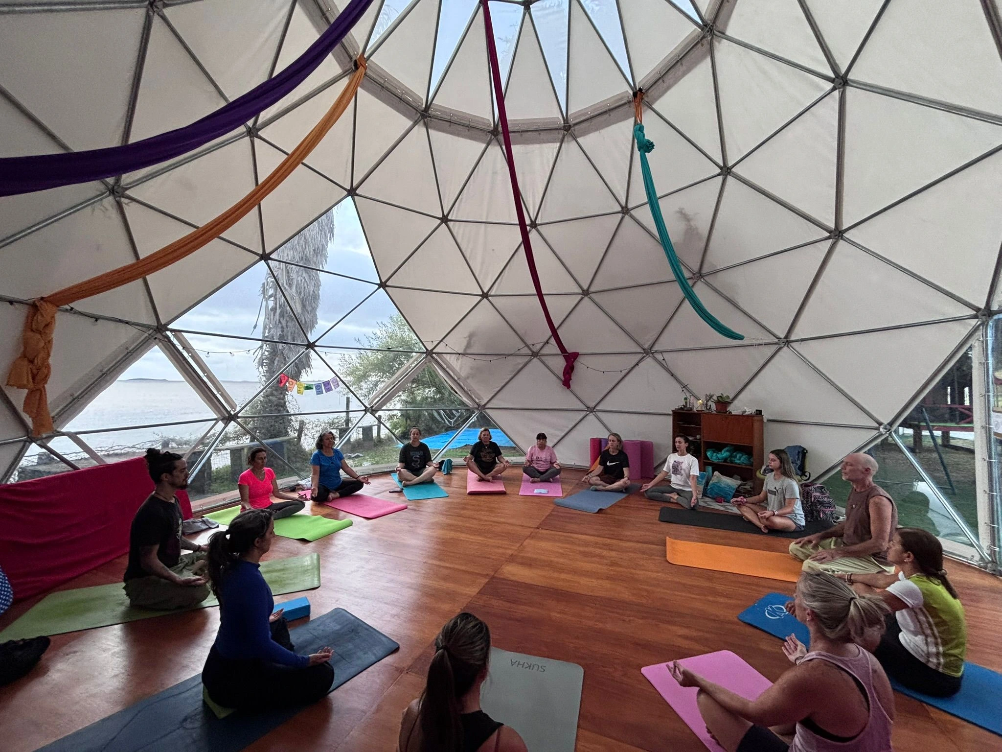 Espacios para la práctica de yoga, meditación y relajación gracias a su «energía poderosa» y conexión con los sonidos de la naturaleza. El domo geodésico se ha consolidado como el espacio predilecto para el bienestar debido a sus propiedades biofísicas. La ausencia de ángulos rectos y la circulación fluida del aire y la energía generan un entorno que reduce el estrés de forma natural. Al no existir columnas que interrumpan la visión, se crea un espacio diáfano que simboliza la unidad y la introspección, elementos fundamentales para prácticas como el yoga y la meditación profunda.