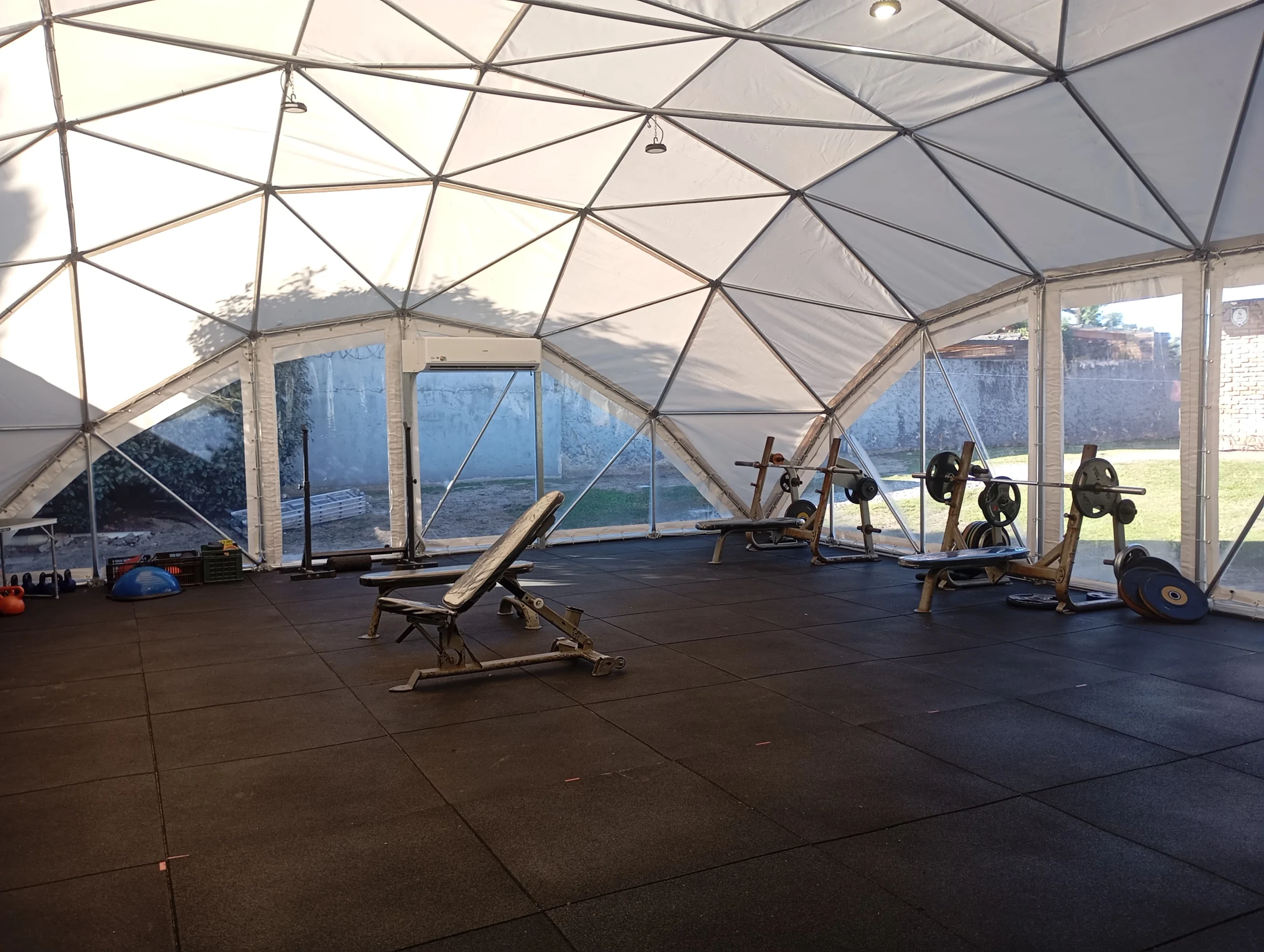 El diseño de un domo geodésico es la solución definitiva para quienes buscan un espacio de entrenamiento de alto rendimiento. Al carecer de vigas o columnas intermedias, ofrece una planta libre de obstáculos que es fundamental para actividades que requieren amplitud de movimiento, como el baile, las artes marciales o las clases de aeróbic. Esta libertad espacial no solo mejora la seguridad de los usuarios, sino que permite una distribución del equipamiento de gimnasio mucho más orgánica, facilitando zonas de entrenamiento funcional donde el flujo de personas es constante y sin interrupciones físicas. El domo representa una respuesta rápida y estética ante la necesidad de metros cuadrados adicionales. Ya sea que un complejo deportivo necesite una sala extra para actividades específicas o que un negocio requiera un espacio de exhibición dinámico, el domo se adapta con una eficiencia térmica que mantiene el ambiente fresco durante el ejercicio intenso.